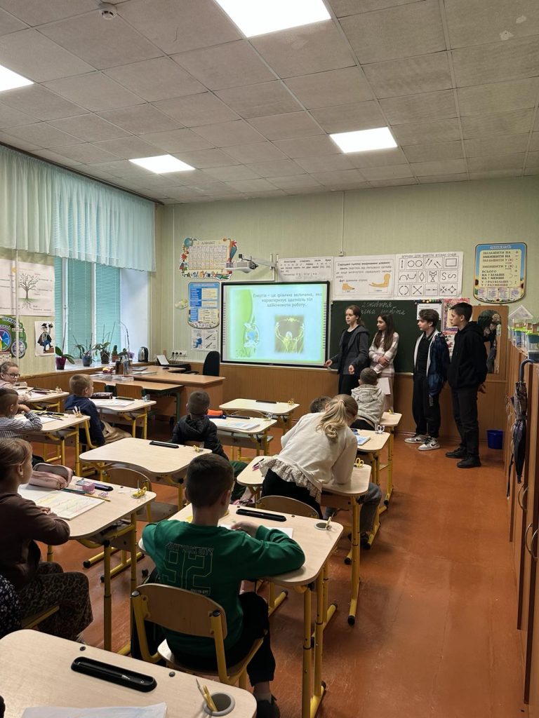 Тема зустрічей: "Енергоефективність — шлях до чистого майбутнього України". Діти самостійно підготували електронні презентації, цікаві загадки та конкурси вікторини. Волонтери розповідали молодшим школярам про те, чому важливо економити енергію і як кожен із нас може допомогти зберегти природу та зробити нашу країну кращою.